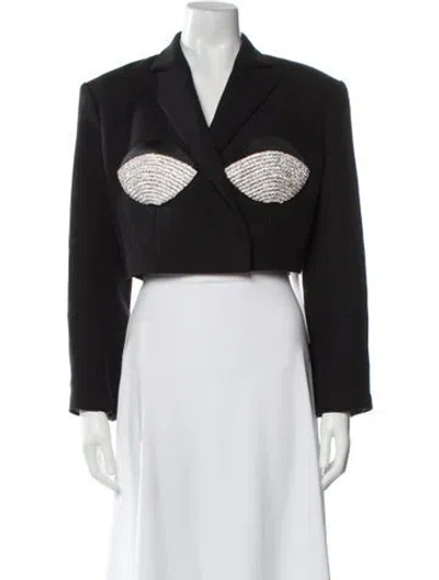 Nuè Evening Jacket Black Patterned Crystal Embellishments & Pointed Collar Snap Closure Fit: Jackets by Nuè typically fit true to size. | Nuè Patterned Evening Jacket in Black, Women's M