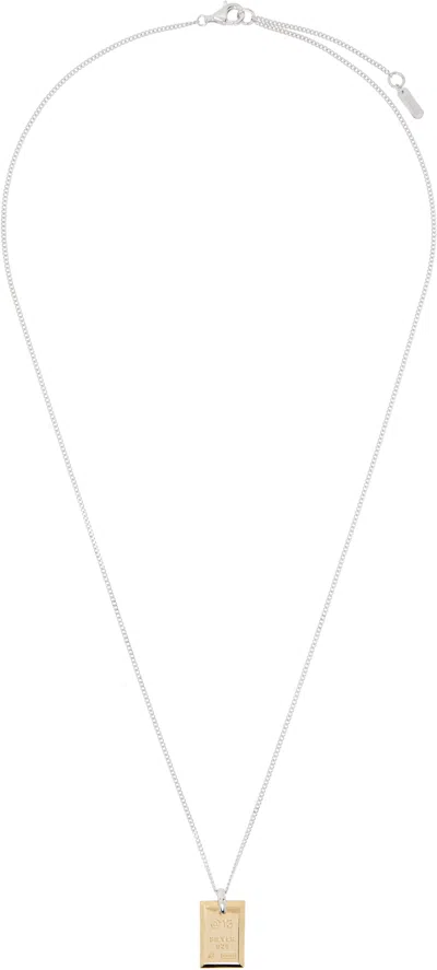 Curb chain necklace in rhodium-plated sterling silver. · Logo-engraved 14k yellow gold-plated sterling silver pendant · Logo plaque at adjustable lobster-clasp fastening · L24 Supplier color: Gold
