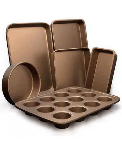 Color/Finish: Gold Features: Professional Home Kitchen Bake Pan Set Commercial Grade Restaurant Quality Metal Bakeware Durable & Reliable Cookie & Muffin Sheet Oven Pan Style Attractive, Stylish Non-Stick Metallic Coating Dishwasher Safe Long-Lasting, Stain-Resistant & Easy-To-Clean Premium Food Grade Bake Pan Construction Space-Saving Stackable Wide Tray Pan Design Not Recommended For Microwave And Any Appliances That Use Fire Ideal Use For Baking Cake, Cookie, Bread, Brownies, Lasagna, Etc. Used With Kitchen Ovens, Countertop Convection Ovens, Toaster Ovens Great For Food Prep, Serving, Cooking, Sweet Treats, Pastry Dessert Baking Pfoa, Pfos, Ptfe Free Measures Cookie Sheet Tray Size (L X W X H): 13.4 X 9.6 X 1.3 -Inches Wide Baking Pan Size (L X W X H): 13.6 X 9.7 X 2.2 -Inches Square Bake Pan Size (L X W X H): 8.6 X 8.6 X 1.9 -Inches Muffin Pan Size (L X W X H): 15.4 X 11.0 X 1.6 -Inches Bread Loaf Pan Size (L X W X H): 9.1 X 5.0 X 2.6 -Inches Round Cake Pan Size (L X W X H): 7.7 X 7.7 X 1.8 -In Engineered Carbon Steel Metal Alloy Yes Imported Contents Of Set: What's In The Box: (1) Cookie Sheet Tray (1) Wide Baking Pan (1) Square Bake Pan (1) Oven Muffin Pan (1) Bread Loaf Pan (1) Round Cake Pan