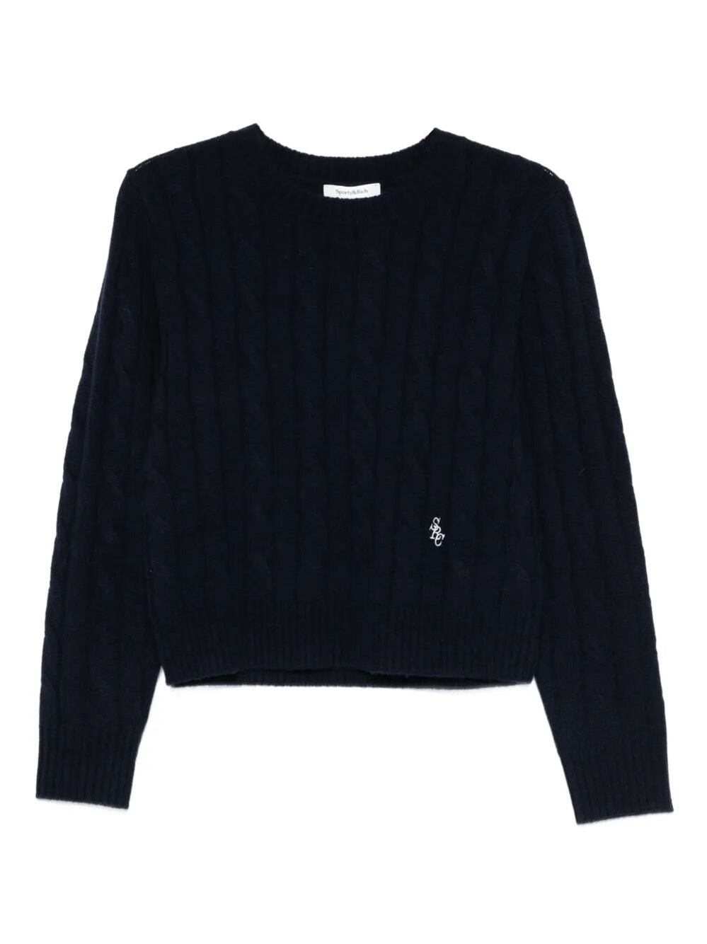 Introducing the "SRC" CABLEKNIT CASHMERE SWEATER by SPORTY & RICH, a luxurious addition to your Fall Winter wardrobe. Crafted from an exquisite blend of 70% cashmere and 30% wool, this dark navy beauty offers unparalleled softness and warmth. Made in China, it reflects attention to detail and quality craftsmanship. Its unique cable knit design adds texture and sophistication, making it perfect for both casual outings and special occasions. Pair it with tailored trousers or a chic skirt for a refined look that exudes confidence and style.