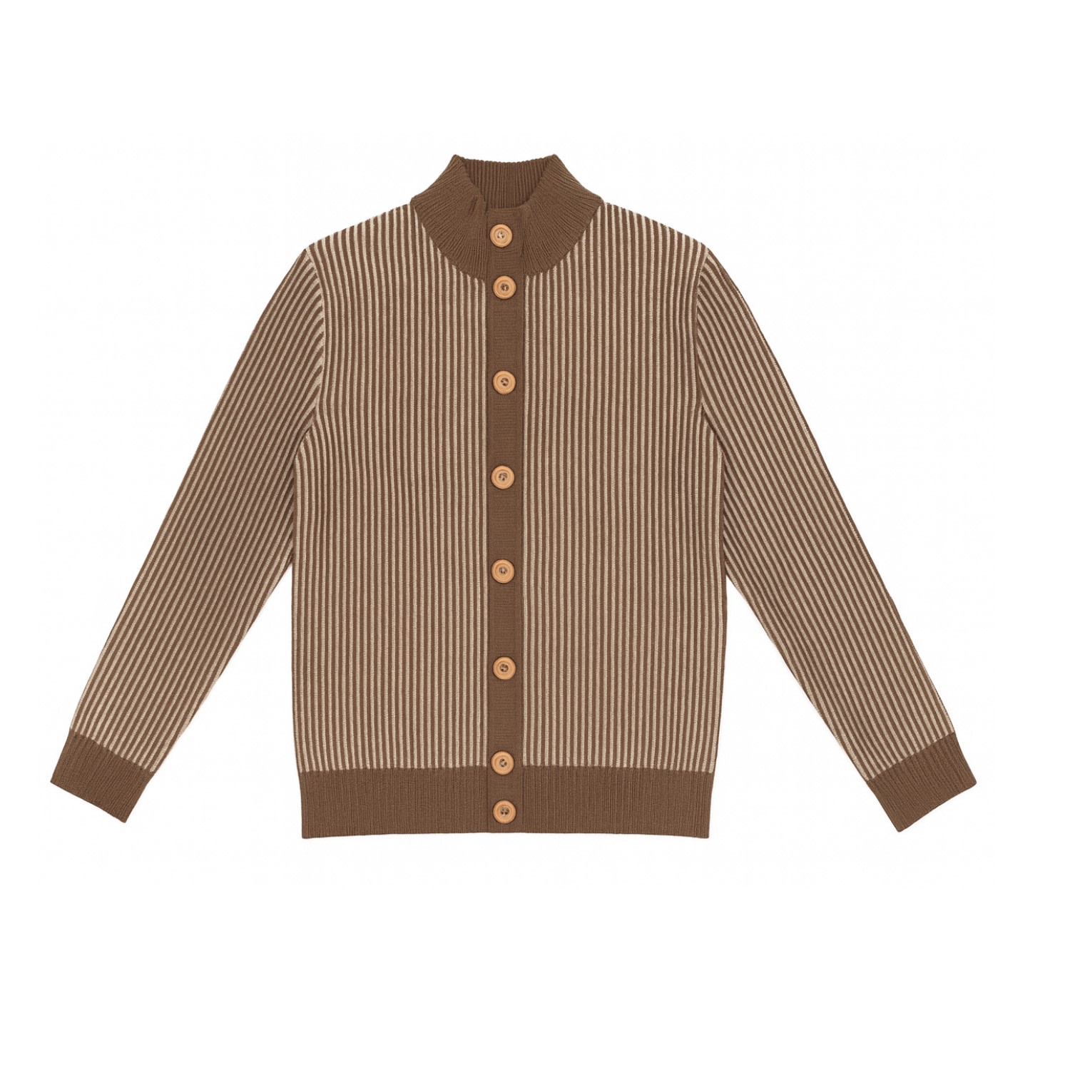 Men's Brown Men's Striped Milano-stitch Cardigan – Premium Italian Wool Blend