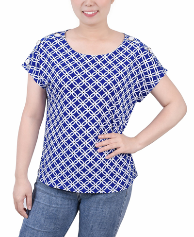 NY COLLECTION Petite Size Short Extended Sleeve Top In Blue