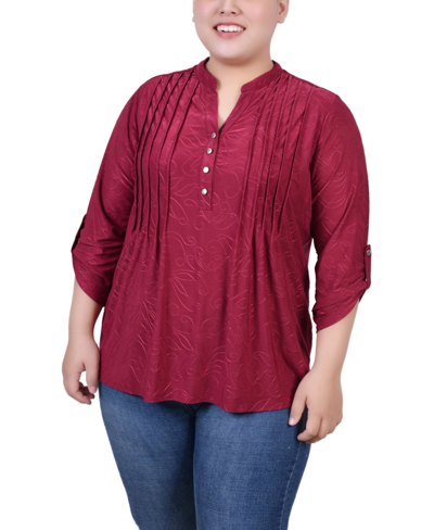 NY COLLECTION Plus Size 3/4 Roll Tab Pullover Top In Beet Red