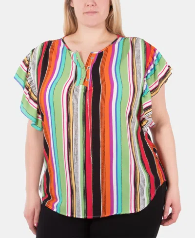 NY COLLECTION Plus Size Lace-up Flutter-sleeve Top In Multi Modernline
