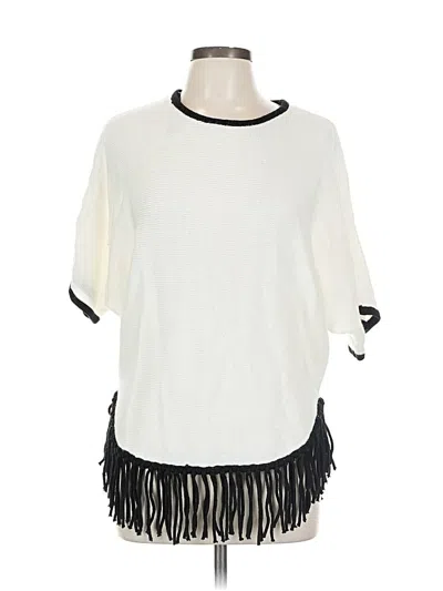 NY Collection Pullover Sweater, Size: Large. Item Details: Ivory, Cold Shoulder Neckline, Short Sleeve, Fringe, Women's Tops, Acrylic/Polyester
