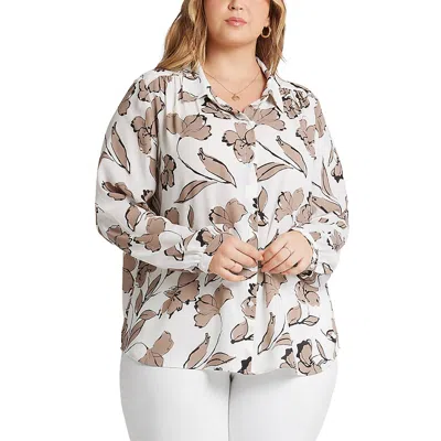 NYDJ Plus Womens Printed Chiffon Button-down Top In Multi