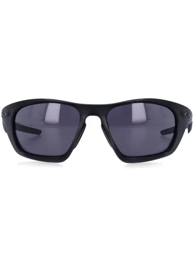 black acetate semi-matte finish shield frame tinted lenses logo plaque at the arm sculpted arms straight tips These glasses come with a protective case.