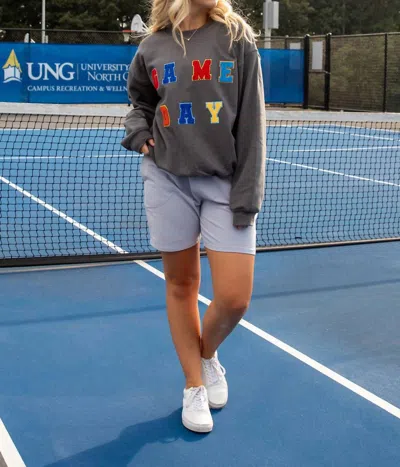 Patch Game Day Crewneck Long Sleeve Top In Multi Color