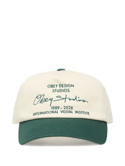beige tonal topstitching five-panel construction curved peak adjustable strap at the rear