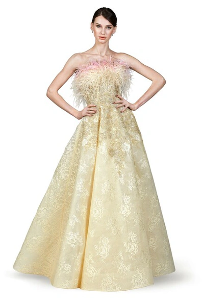 O'BLANC Feathered A-line Gown