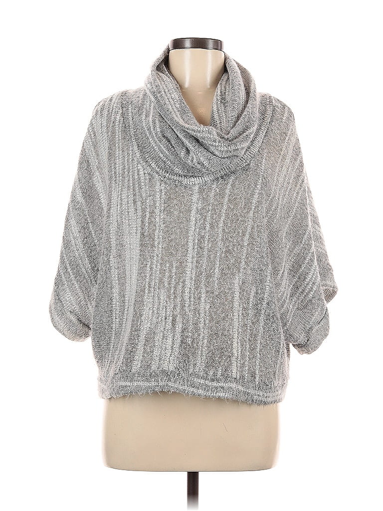 Oboe Poncho, Size: Medium. Item Details: Silver, Metallic Pattern, Cowl Neck, 3/4 Sleeve, Women's Sweaters & Sweatshirts, Acrylic/Polyester