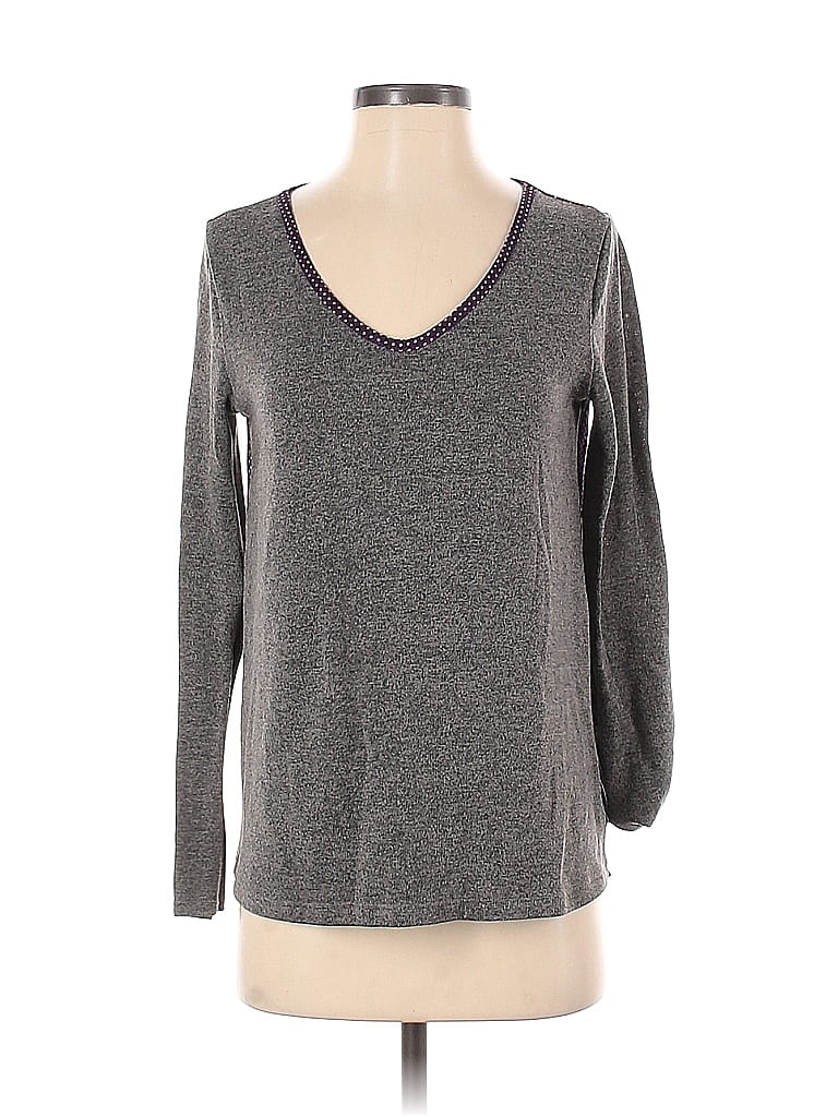 ODDY Pullover Sweater, Size: Small. Item Details: Gray, V Neck, 3/4 Sleeve, Glitter, Women's Tops, Polyester/Spandex