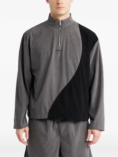 grey corduroy texture zip fastening high neck long sleeves logo detail