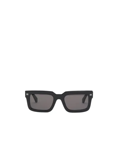 Frame material: acetate. Lens material: nylon. Frame color: black. Lens color: gray. Frame shape: square. Non-adjustable nose pads. Logo plaque on the temples. Style: OERI130. Made in Italy