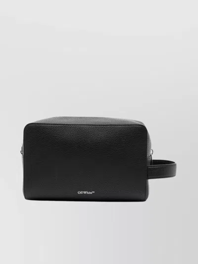 OFF-WHITE Diagonal Stripe Embossed Leather Pouch With Side Handle