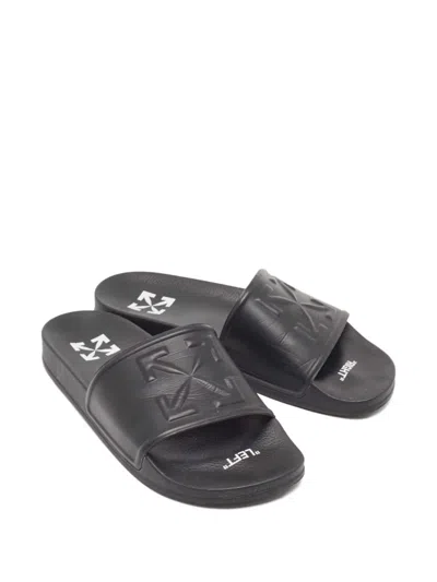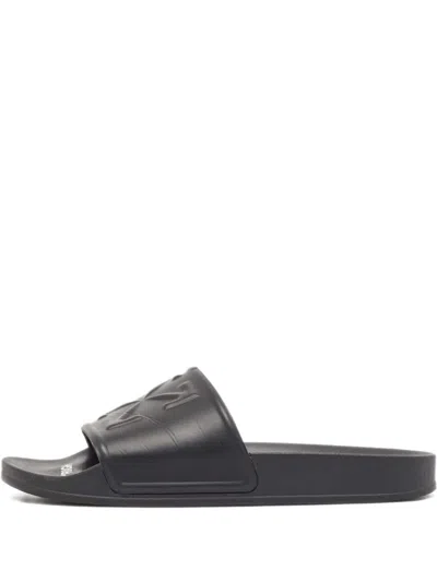Pre-owned Embossed Logo Slides In Black