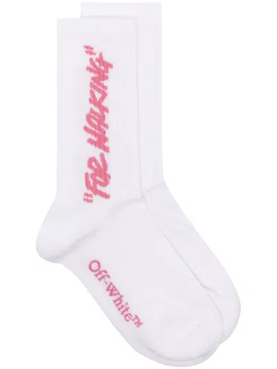 OFF-WHITE "for Walking" Ribbed Crew Socks In Whiteseapi