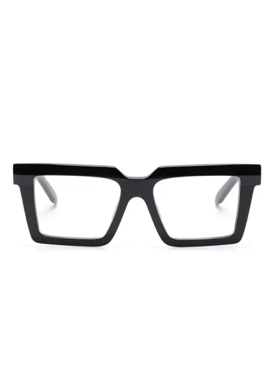 Squared black eyeglasses with contrasting logo print on the side. Made in Italy 100% acetate