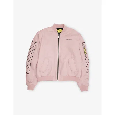 OFF-WHITE Kids' Rose Pink - Black Embroidered-logo Long Sleeve Nylon Bomber Jacket 12 Years