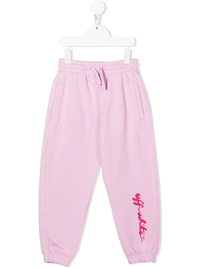 OFF-WHITE Kids' Script Logo-print Track Pants In Pink