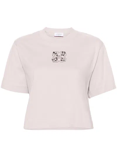 OFF-WHITE Crew-neck Crop T-shirt With Rhinestones Embellished Logo In Neutral