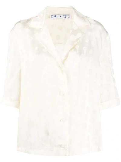 White doesn't mean boring, especially when Off-White are involved. This top from Off-White has a notched collar and splatter-effect polka dots. Classic with a twist. Featuring notched lapels, a front button fastening and short sleeves.