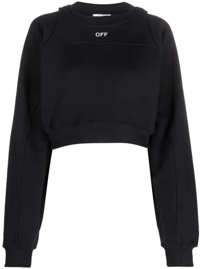 logo-print cropped cotton sweatshirt from OFF-WHITE featuring black, cotton, logo print to the front, layered design, cropped, crew neck, long sleeves and ribbed cuffs and hem.