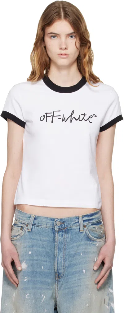 OFF-WHITE White Embroidered Script Fitted T-shirt In Multi