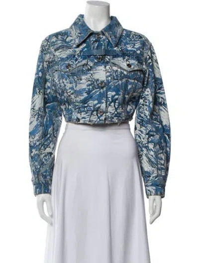 Pre-owned 2018 Printed Denim Jacket In Blue