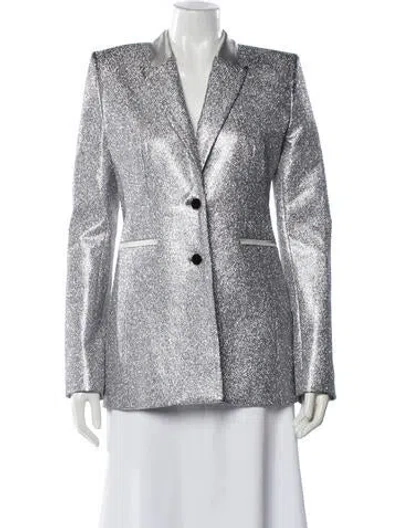 Off-White Blazer From the 2022 Collection by Virgil Abloh Printed Signature Logo Glitter Accents & Pointed Collar Slit Pockets & Button Closure Fit: Jackets by Off-White c/o Virgil Abloh typically fit true to size. | Off-White 2022 Printed Blazer w/ Tags, Women's US4, IT40 | S