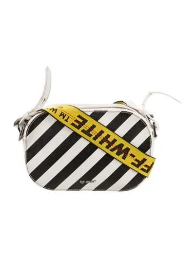 Off-White Crossbody Bag From the 2018 Collection Neutrals & White Striped Gunmetal Hardware Flat Handle & Single Shoulder Strap Single Exterior Pocket Twill Lining & Single Interior Pocket Zip Closure at Top | Off-White Diagonals in Neutrals/White