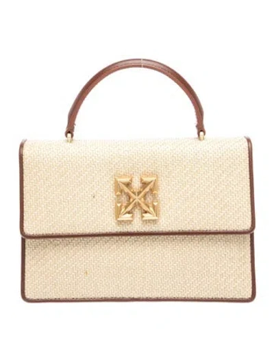 Off-White Top Handle Bag Neutrals Raffia Gold-Tone Hardware Rolled Handle Single Exterior Pocket Leather Lining & Single Interior Pocket Flap Closure at Top | Off-White Raffia Jitney 1.4 in Neutrals