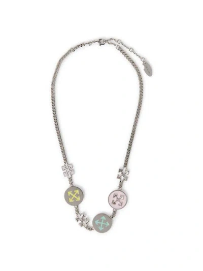 SILVER PLATED - ARROW DESIGN - ARROW BUTTON NECKLACE BRASS + ENAMEL Material:Brass 100% Multi-Colored Enamel Made In Italy