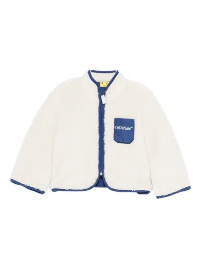 off-white teddy texture zip fastening patch pocket navy blue trim logo motif