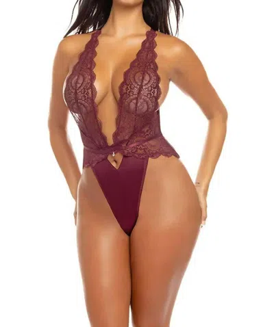 OH LA LA CHERI Sadie Lace And Satin Teddy In Windsor Wine In Burgundy