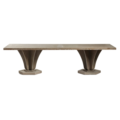 Our Allegro Dining Table features a base that flares upwards and outwards comparably to a gramophone, which lent it its musical name. This is the largest of our three rectangular versions, though it is also available in two round variations. Round tables create a more intimate experience while the linear version is a more traditional choice. All the tops feature an indentation that frames the edge, drawing attention to the character in the textured grain of the oak. This version comes in a warm Burnt Oak, but it is also available in a paler Weathered Oak finish. Large Rectangular Allegro Dining Table - Burnt Oak Large Rectangular Allegro Dining Table - Burnt Oak
