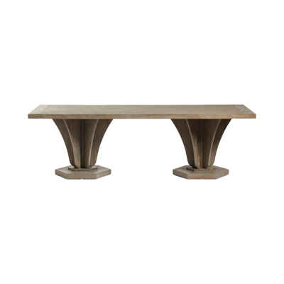 Our Allegro Dining Table features a base that flares upwards and outwards comparably to a gramophone, which lent it its musical name. This is the middle size of our three rectangular versions, though it is also available in two round variations. Round tables create a more intimate experience while the linear version is a more traditional choice. All the tops feature an indentation that frames the edge, drawing attention to the character in the textured grain of the oak. This version comes in a warm Burnt Oak, but it is also available in a paler Weathered Oak finish. Medium Rectangular Allegro Dining Table - Burnt Oak Medium Rectangular Allegro Dining Table - Burnt Oak