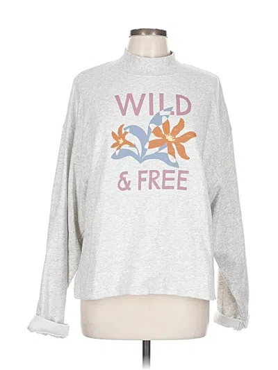 Old Navy Sweatshirt, Size: Large. Item Details: Silver, Mock Neckline, Long Sleeve, Print, Women's Tops, Cotton/Polyester