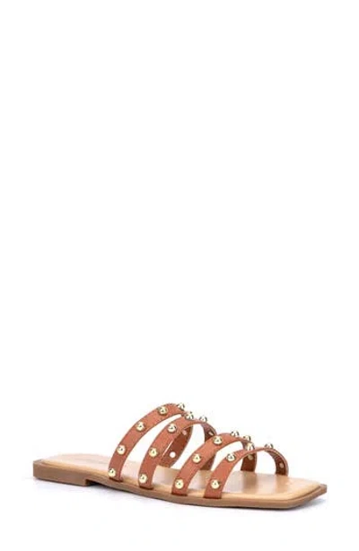 Heidi Cabochon Stud Slide Sandal In Cognac
