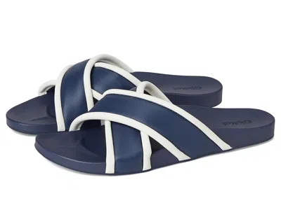 OluKai Ani - Women's Sandals : Mood Indigo/White Sand : Olukai is a proud Certified B Corporation brand dedicated to meeting high standards for sustainability and social responsibility. ; Take the OluKai Ani waterproof sandal with you on vacation or to the pool for a modern and playful addition to your wardrobe. Its crisscross strap construction adds a stylish touch and ensures your feet stay secure, making it the perfect choice for any leisurely escape. ; Synthetic rubber upper and lining. ; Ethylene vinyl acetate insole. ; Slip-on style. ; Peep toe silhouette. ; Non-marking wet grip rubber outsole. ; Imported. Measurements: ; Weight: 8 oz ; Product measurements were taken using size 9, width B - Medium. Please note that measurements may vary by size. | OluKai Ani Women's Sandals Mood Indigo/White Sand : 9 B - Medium, Rubber