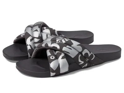 OluKai Hila - Women's Shoes : Silver/Pavement : Olukai is a proud Certified B Corporation brand dedicated to meeting high standards for sustainability and social responsibility. ; Bask in the sunshine with the water-friendly Hila Slide, your ideal slide sandal for tropical vacations, beach days, and embracing a summer state of mind. This slide features an elevated puffy design, creating a sensation of floating on air with each step. With the Hila Sandal, there's no need to choose between style and comfort; it delivers both. Experience relaxation suitable for any warm-weather occasion with the Hila, a true essential for the season. ; Synthetic upper and lining. ; Cushioned footbed with arch support. ; Water-resistant construction. ; Round toe design. ; Slip-on style. ; Signature brand detailing embossed on the insole. ; Rubber outsole. ; Imported. Measurements: ; Weight: 8 oz ; Product measurements were taken using size 9, width B - Medium. Please note that measurements may vary by size. | OluKai Hila Women's Shoes Silver/Pavement : 9 B - Medium, Synthetic