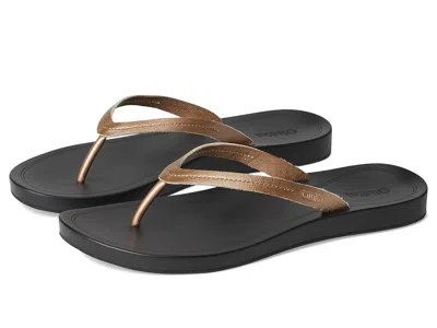 OluKai Lalahi - Women's Sandals : Copper/Lava Rock : Olukai is a proud Certified B Corporation brand dedicated to meeting high standards for sustainability and social responsibility. ; Walk the shore in style wearing the OluKai Lalahi. Crafted from leather upper, lining, and EVA insole, this pair of flip-flops features open round toe, thong style strap, slip-on style, and arch support. Its sleek three-point design and minimalist aesthetic make it a clean and smooth addition that complements your everyday wardrobe. ; Non-marking wet grip rubber outsole. ; Imported. Measurements: ; Weight: 6 oz ; Product measurements were taken using size 9, width B - Medium. Please note that measurements may vary by size. | OluKai Lalahi Women's Sandals Copper/Lava Rock : 5 B - Medium, Leather