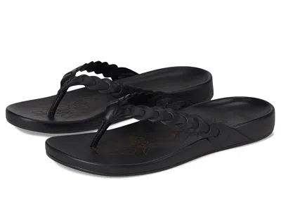 OluKai Lei - Women's Sandals : Lava Rock/Lava Rock : Olukai is a proud Certified B Corporation brand dedicated to meeting high standards for sustainability and social responsibility. ; The OluKai Lei is a premium sandal that's perfect for a day spent with friends-from lunch to afternoon shopping. This leather heritage sandal stands out with its clean, modern design, interlocking leather straps, and lasered embroidery detailing. Featuring round toe, thong style strap, slip-on style, and brand name on the footbed. ; Leather lining, insole. ; Arch support. ; Non-marking Wet Grip Rubber outsole ; Imported. | OluKai Lei Women's Sandals Lava Rock/Lava Rock : 7 B - Medium, Leather
