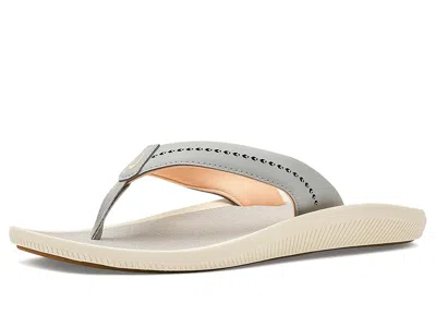 OluKai Ulele - Women's Sandals : Ash/Ash : Olukai is a proud Certified B Corporation brand dedicated to meeting high standards for sustainability and social responsibility. ; The OluKai Women's Ulele blends sporty performance with contemporary style. Water-friendly and designed for versatility, it offers OluKai's signature comfort and craftsmanship, superior grip, and styling in a sleek, modern silhouette. Designed with a sleek thong silhouette, this easygoing style features a durable rubber outsole and a comfortable feel that transitions effortlessly from sand to street. ; Ethylene-vinyl acetate upper, cotton lining, and ethylene-vinyl acetate insole. ; Water-resistant straps. ; Slip-on style. ; Kalo plant-inspired laser-cut upper straps and an embroidered hook logo. ; Open toe design. ; Imported. Measurements: ; Heel Height: 11 14 in ; Product measurements were taken using size 7, width B - Medium. Please note that measurements may vary by size. | OluKai Ulele Women's Sandals Ash/Ash : 12 B - Medium, Synthetic