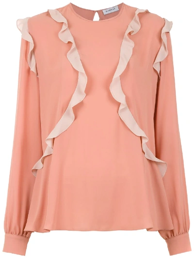 Sepia Mosaicos Mix top from Olympiah featuring a ruffled design, a round neck and long sleeves.