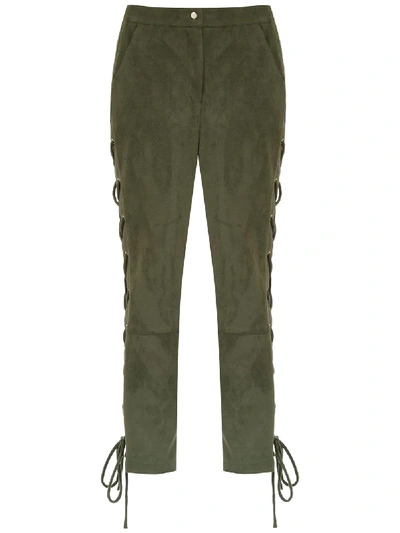 Khaki green Nápoles pants from Olympiah featuring a mid rise, a front fastening, a lace up detail and a straight fit.