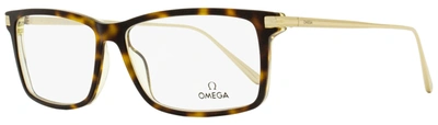The Omega OM5014 optical frames feature a classic rectangular shape with an integrated saddle bridge design suitable for men. The acetate frame front is accented with metal temples that have their edges finished with customized milling and are accented with subtle branding. Inspired by the design of its highly sought after watches, the OMEGA eyewear collection is characterized by precision craftmanship and exceptional materials. Using classic shapes and contemporary motifs OMEGAs legendary attention to detail is a hallmark of this collection. Please note these eyeglasses are provided with Demo Lenses in order to demonstrate the final appearance of your frames. Please visit your local Optometrist or Optician to replace with optical quality lenses.Frame Material - Plastic (Acetate)/MetalFrame Color - Havana/GoldLens Color - N/ASize - 58-14-145Made in ItalyIncludes original case and cloth