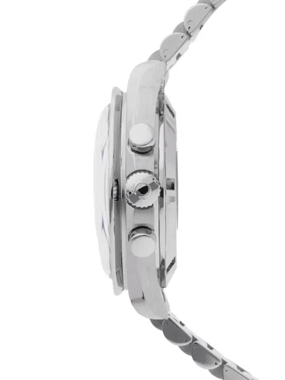 black dial round case tachymeter bezel automatic movement chronograph subdials stainless steel crown