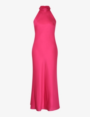 Womens Magenta Seychelles Halter-neck Drape-back Recycled-polyester Maxi Dress