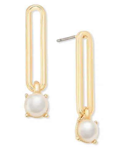 Gold-tone Link & Imitation Pearl Linear Drop Earrings, Exclusively At Macy's